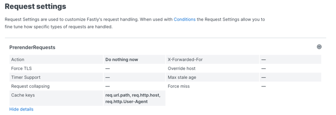 Important Note: This integration relies on Fastly’s VCL (Varnish Configuration Language) snippets to manage request handling and forward traffic to Prerender.