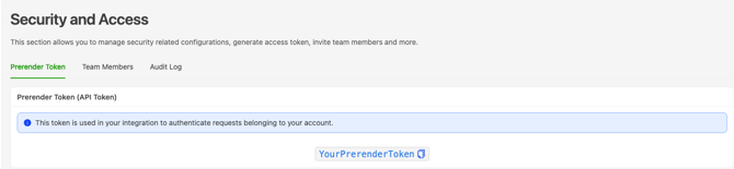 Prerender Dashboard → Security & Access → Prerender Token (API Token).